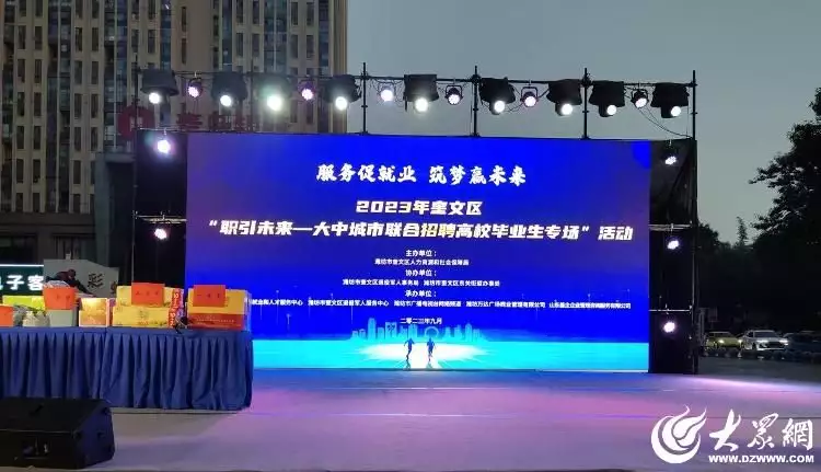 为进一步做好高校毕业生等青年就业促进工作,推动实现更加充分更高质量就业,由奎文区人力资源和社会保障局主办的2023年奎文区“职引未来—大中城市联合招聘高校毕业生专场”活动于9月16日晚18:00-20:00在潍坊万达广场西外广场成功举办。